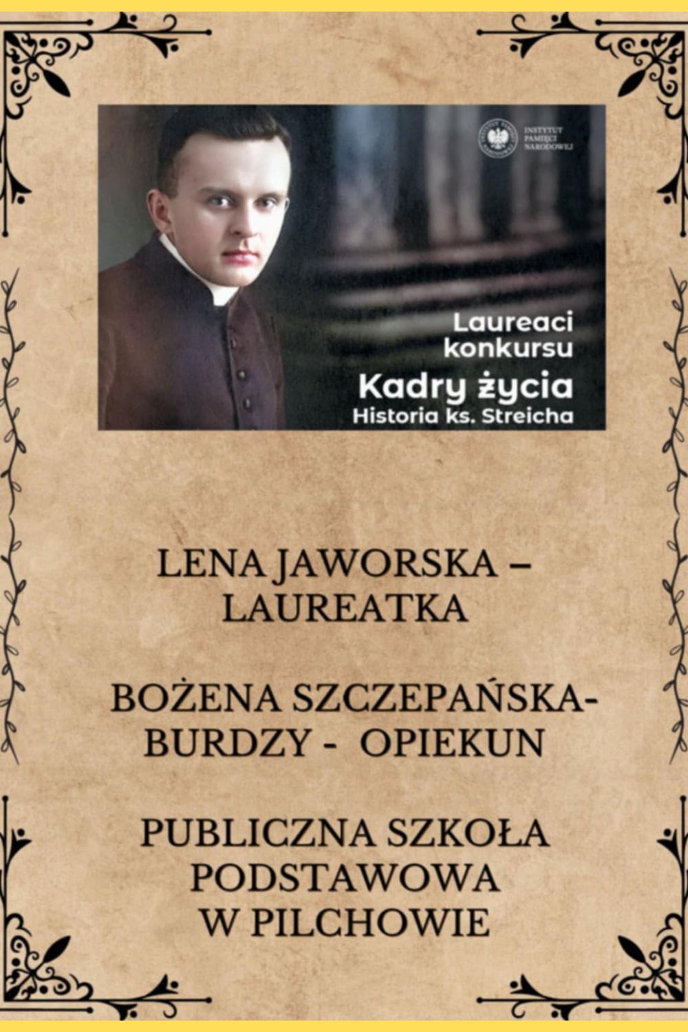 Uczniowie klasy VII i VIII wzięli udział w konkursie , którego celem było zainteresowanie średniowieczną historią Polski oraz upamiętnienie 1000 rocznicy koronacji w Archikatedrze Gnieźnieńskiej dwóch pierwszych królów Polski : Bolesława Chrobrego oraz Mieszka II Lamberta . Na konkurs napłynęło 150 prac.Wśród nagrodzonych znalazła się uczennica kl. VII -Aleksandra Skrzypek -Kliczewska , która w dniu 3 XII 2025 r. otrzymała nagrodę .