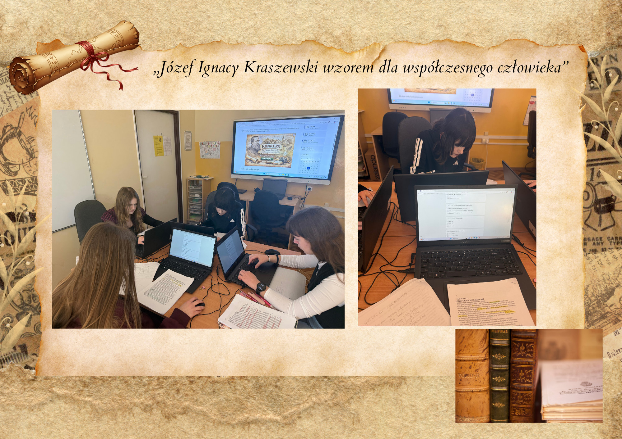 Uczennice przygotowywały się do konkursu w oparciu o biogram Nasz patron: Józef Ignacy Kraszewski. Biografia pisarza i jej miejsce w epoce oraz zapoznawały się z fragmentami Starej baśni – tom I, rozdziały IX, X, XI wraz z nauczycielem j. polskiego p. Agnieszką Zagórską- Nowak.