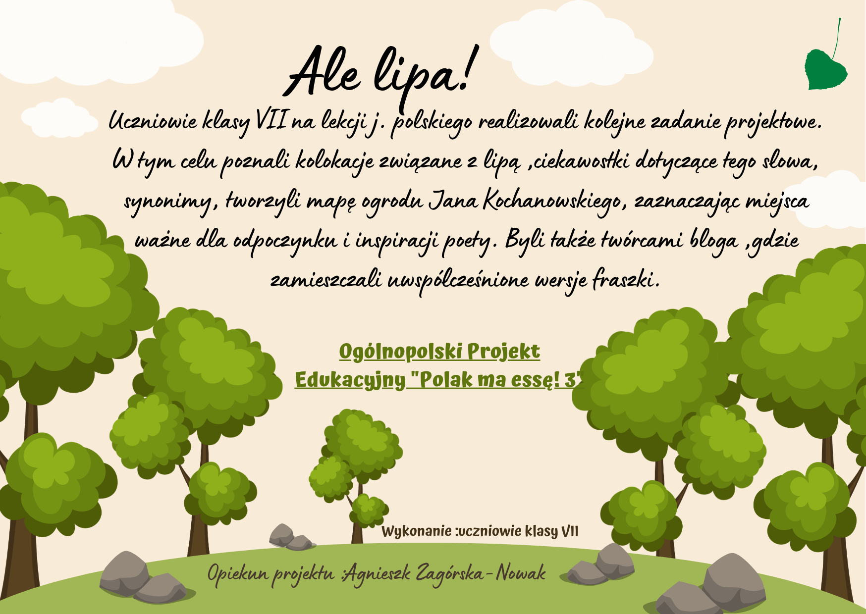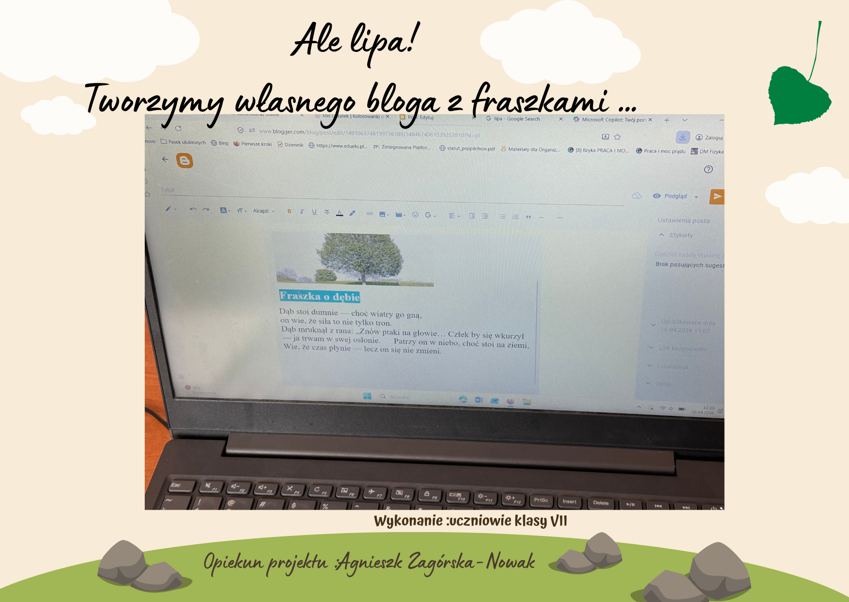 W dniu 17.04.2026 odbyło się spotkanie z weterynarzem, który opowiadał o swojej pracy i doświadczeniach zawodowych. Gość wyjaśnił, na czym polega opieka nad zwierzętami. Opisał codzienne obowiązki, takie jak diagnozowanie chorób, wykonywanie zabiegów oraz udzielanie porad właścicielom zwierząt. Przytoczył również kilka ciekawych historii ze swojej praktyki.