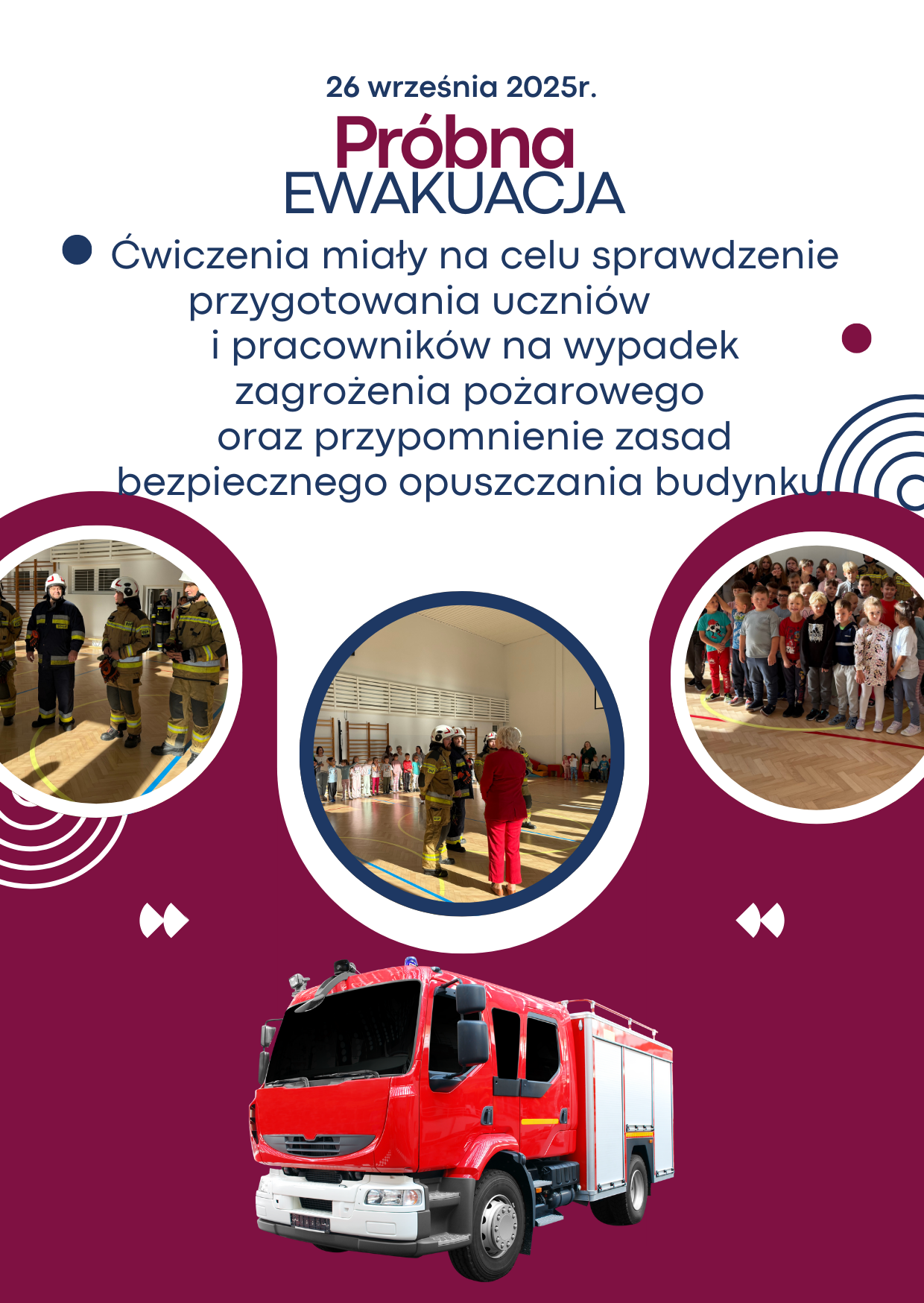 Próbna ewakuacja w naszej szkole...Opublikowano: piątek, 26 wrzesień 2025 21:17 | A.Zag.,W.Wiś. | Drukuj | Odsłony: 122Dyrekcja, nauczyciele i uczniowie naszej szkoły składają serdeczne podziękowania druhom Ochotniczej Straży Pożarnej z Pilchowa za pomoc w przeprowadzeniu próbnej ewakuacji. Pomagacie zmieniać świat na lepszy - dziękujemy...